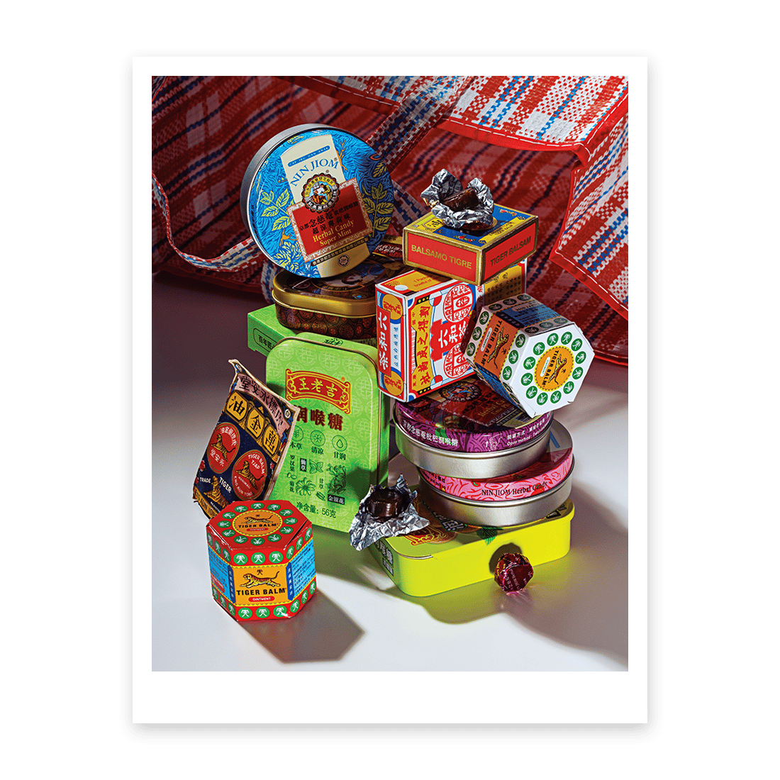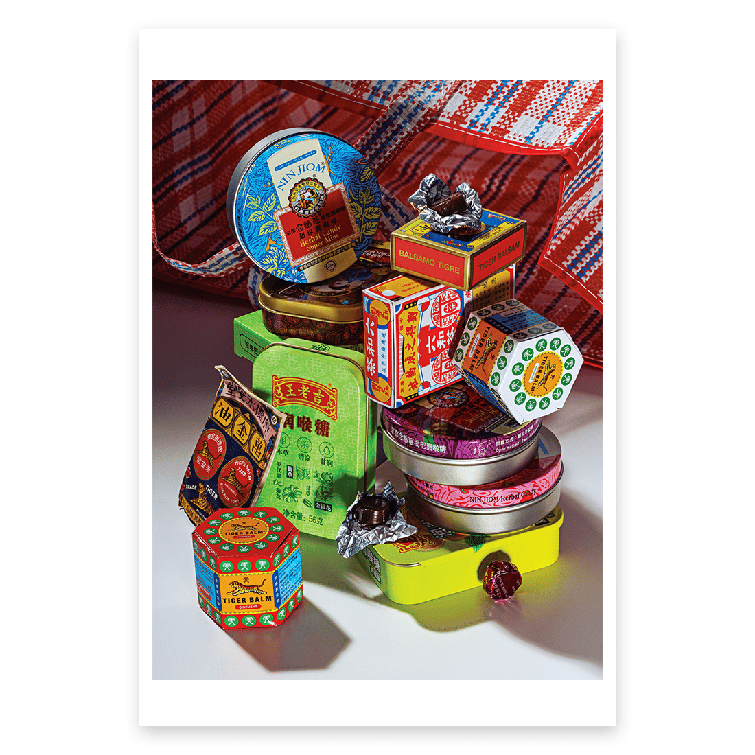 A colorful print inspired by What's in my bag?? ...but make it Chinese and Hong Kong apothecary products.